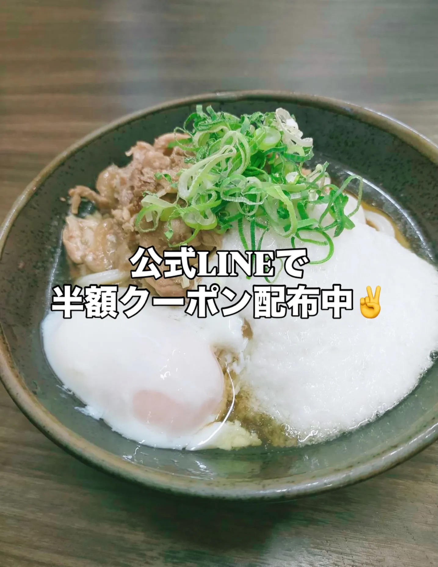 お友達追加時には定番肉温玉ぶっかけの半額クーポンももらえるため、ダブルでお得🉐